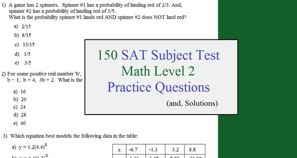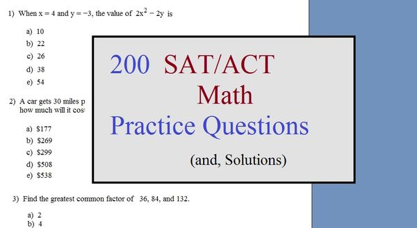 (Check out these math test prep sample questions. If you like the previews, you can purchase the complete files below.). Similar to SAT or ACT practice test.